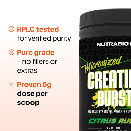 NutraBio Micronized Creatine Monohydrate — 5g Unflavored, Ultra-Pure